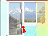 Данная система устанавливается на любые типы дверей, в том числе идеально закрывает балконные двери. Ее конструкция аналогична вертикальной системе. Отличие же заключается в расположении короба, который устанавливается справа или слева для удобства эксплуатации, в результате сетка двигается в горизонтальной плоскости и фиксируется благодаря ручкам-защелкам